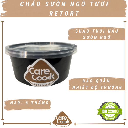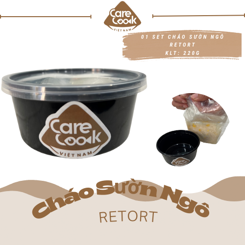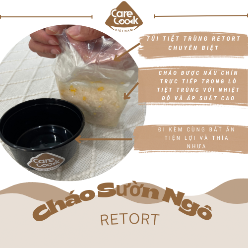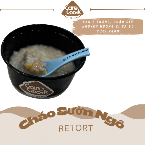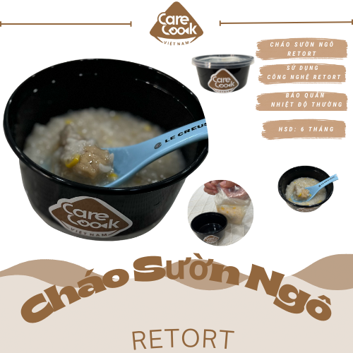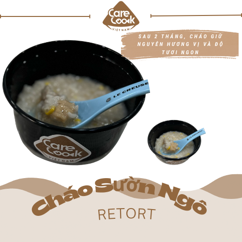 Cháo sườn ngô retort được sản xuất trực tiếp bởi CareCook Việt Nam. Dựa trên nguyên lý và ưu điểm của công nghệ Retort hiện đại như: